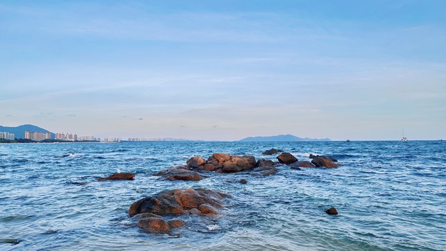 陵水的海水清澈见底,蔚蓝的海浪随风涌动,仿佛是大自然在演奏一首美妙的交响曲。