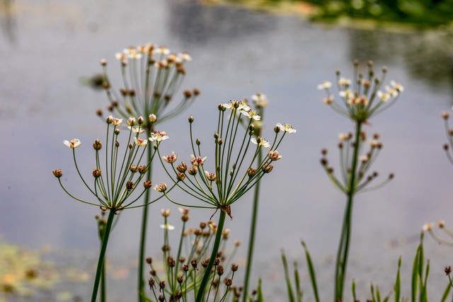 2024年6月22日,吉林省吉林市北山风景区荷花池边野生花蔺开花,成为一道亮丽的风景线。