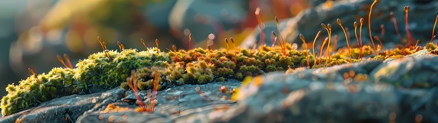 岩石上生长的苔藓,柔和光线,微距摄影,