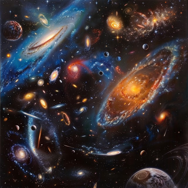 宇宙全景,星系星云,超新星照亮黑暗,引发敬畏与好奇。