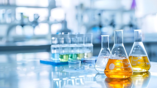 实验室中的烧瓶与化学溶液展现科学研究与实验
