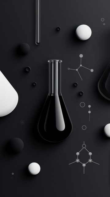 实验室试管和烧杯,以及抽象的化学元素符号