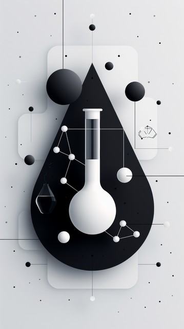 实验室试管和烧杯,以及抽象的化学元素符号