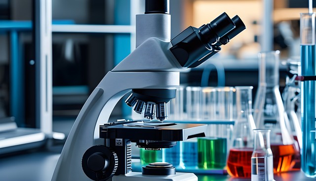 实验室中的显微镜特写