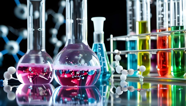 化学实验室中的彩色试剂瓶