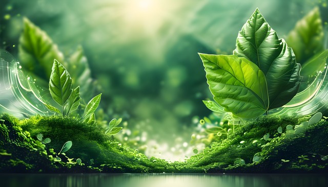 阳光下的绿色叶子与自然景观