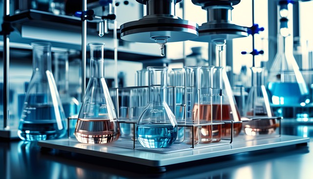 色彩斑斓的实验室玻璃器具与液体,科学探索的象征。