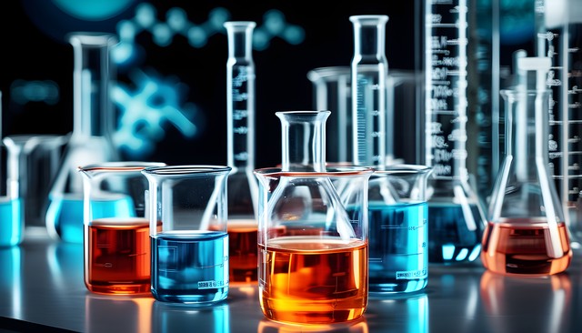 色彩斑斓的实验室玻璃器具与液体,科学探索的象征。