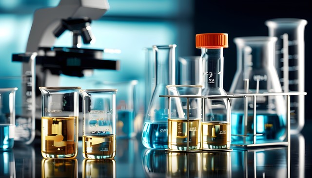 色彩斑斓的实验室玻璃器具与液体,科学探索的象征。