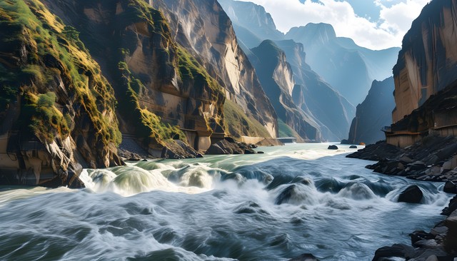 壮丽的山谷与蜿蜒的河流交相辉映,展现出大自然的壮观景象。