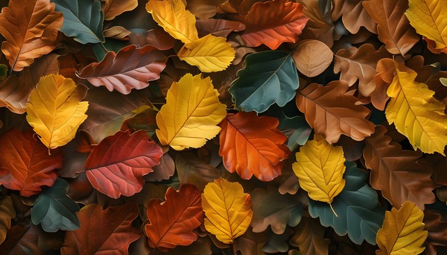 五彩斑斓的秋天落叶铺满地面,呈现出温暖的色彩与自然之美。