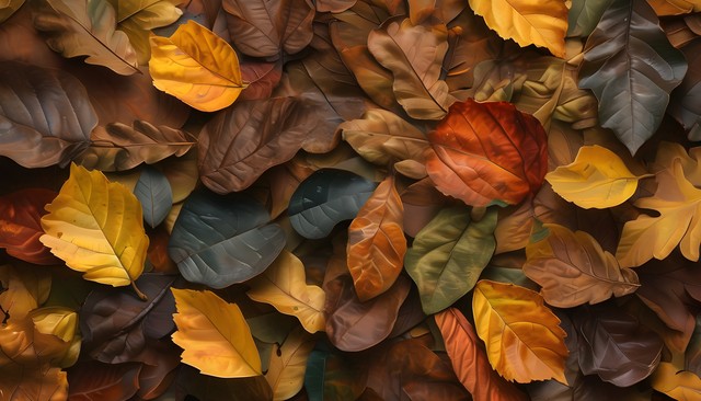 五彩斑斓的秋天落叶铺满地面,呈现出温暖的色彩与自然之美。
