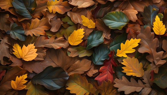 五彩斑斓的秋天落叶铺满地面,呈现出温暖的色彩与自然之美。