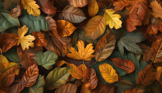 五彩斑斓的秋天落叶铺满地面,呈现出温暖的色彩与自然之美。