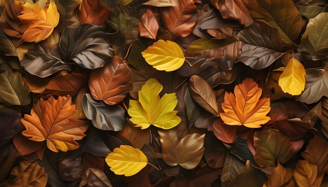 五彩斑斓的秋天落叶铺满地面,呈现出温暖的色彩与自然之美。