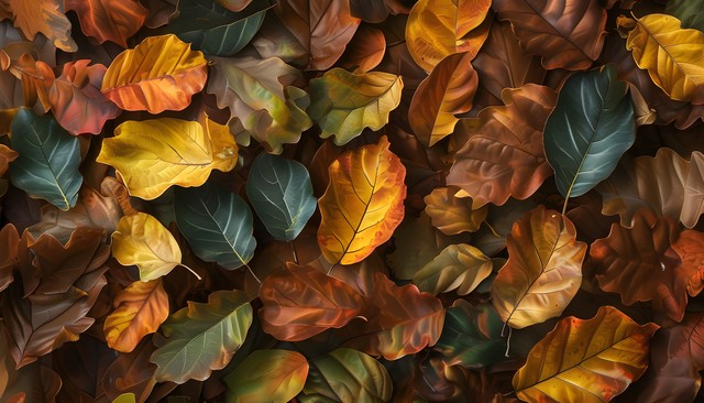 五彩斑斓的秋天落叶铺满地面,呈现出温暖的色彩与自然之美。