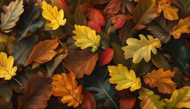 五彩斑斓的秋天落叶铺满地面,呈现出温暖的色彩与自然之美。