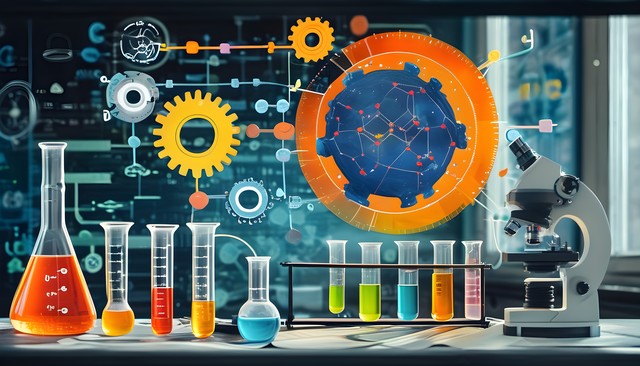 充满能量的原子结构与星球,体现科学与宇宙的关系。