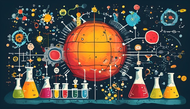 充满能量的原子结构与星球,体现科学与宇宙的关系。