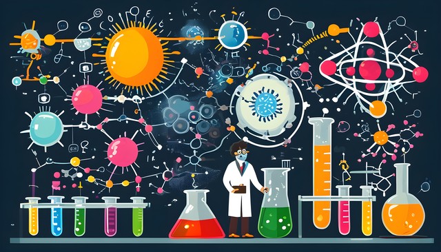 充满能量的原子结构与星球,体现科学与宇宙的关系。