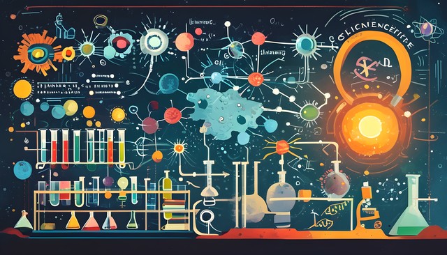 充满能量的原子结构与星球,体现科学与宇宙的关系。