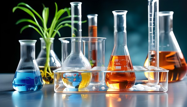 多彩的培养皿与化学试剂,反射出科学实验室的氛围。