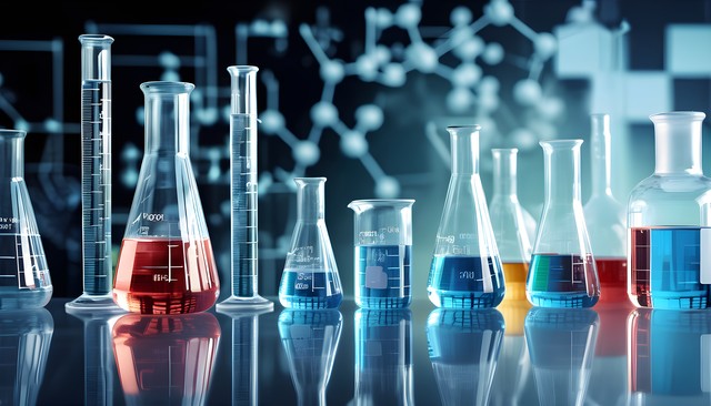 实验室中透明的玻璃器具与科学元素的逼真场景