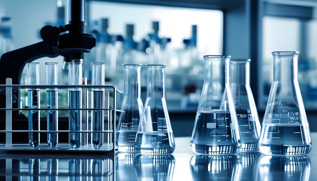实验室中透明的玻璃器具与科学元素的逼真场景