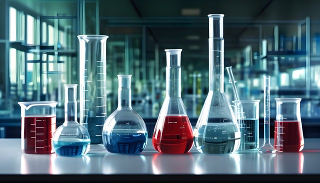 实验室中透明的玻璃器具与科学元素的逼真场景