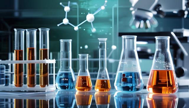 实验室中透明的玻璃器具与科学元素的逼真场景