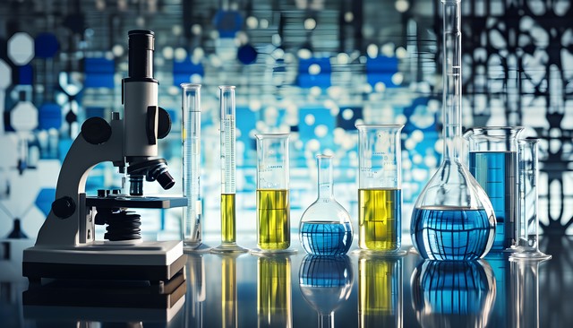 实验室中透明的玻璃器具与科学元素的逼真场景