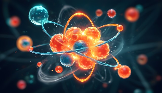 色彩斑斓的原子模型,展现了原子中的质子、中子和电子。