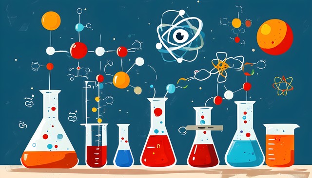 色彩缤纷的实验室器具,象征着化学实验与科学探索的艺术化表现。