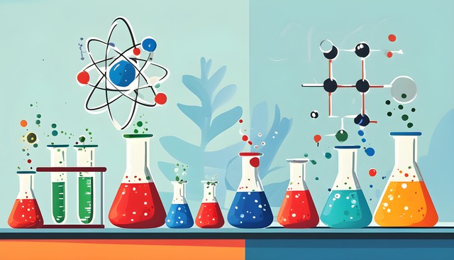色彩缤纷的实验室器具,象征着化学实验与科学探索的艺术化表现。