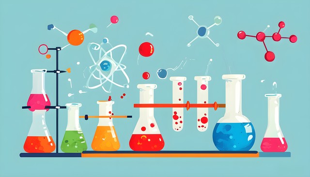 色彩缤纷的实验室器具,象征着化学实验与科学探索的艺术化表现。
