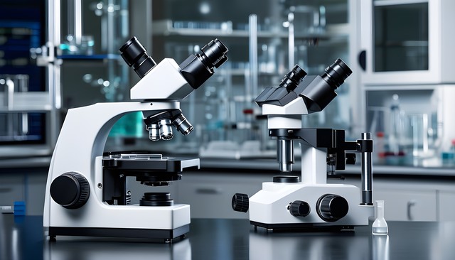 实验室内的显微镜与各类化学试剂瓶,展现科研氛围。