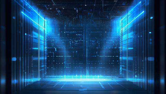 科幻风格的蓝色光线背景,充满未来感,适合技术与数字主题。