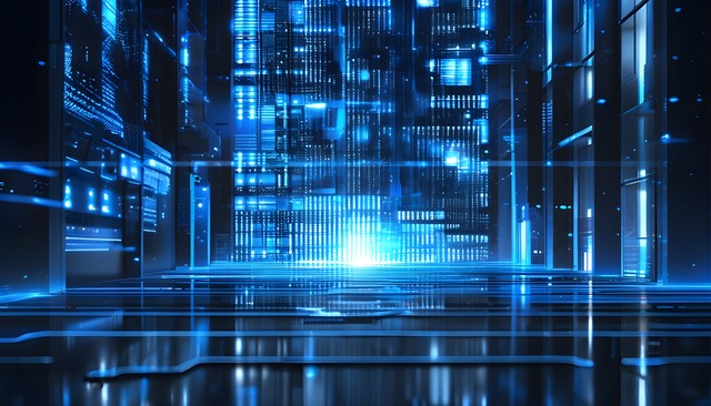 科幻风格的蓝色光线背景,充满未来感,适合技术与数字主题。