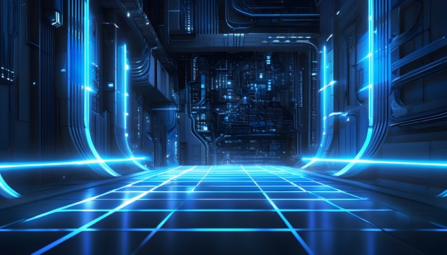 科幻风格的蓝色光线背景,充满未来感,适合技术与数字主题。