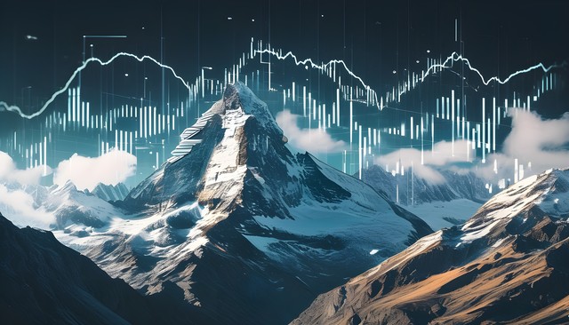 高耸入云的雪山与科技感的元素结合,形成壮丽的自然与未来感景观。