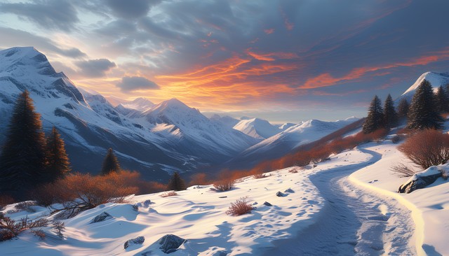 雪山与熔岩相间的奇幻景象,展现了自然的对比之美。