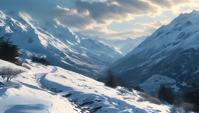 雪山与熔岩相间的奇幻景象,展现了自然的对比之美。