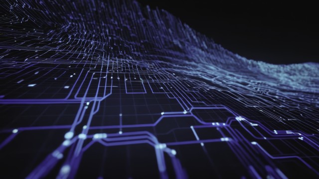 未来科技感的电路板与网络图抽象展示