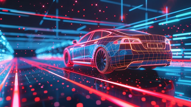 科技风电动汽车无人驾驶概念插画