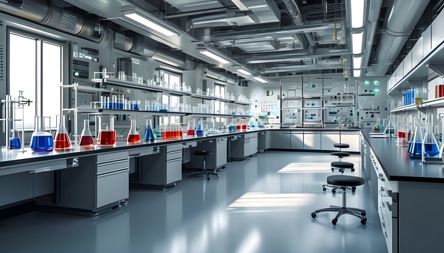 现代化的实验室,配备先进设备和清晰的窗户,整洁明亮。