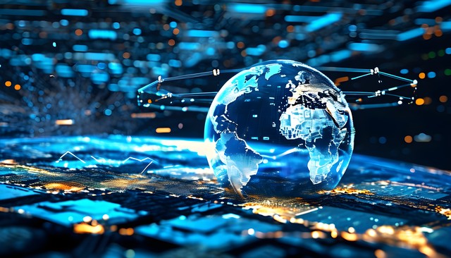 一个逼真的数字地球与数据流动结合的科技感图像,展现了现代技术的魅力。