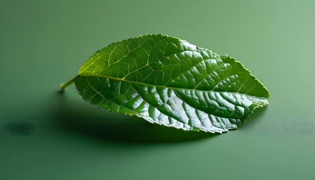 一片绿色的叶子,背景为浅绿色,展现自然之美。