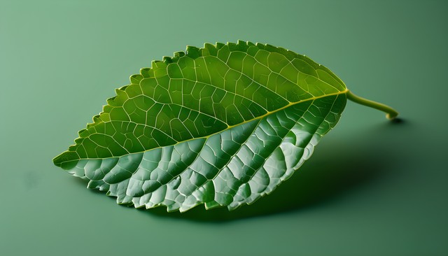 一片绿色的叶子,背景为浅绿色,展现自然之美。