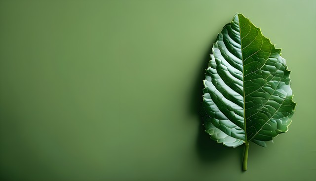 一片绿色的叶子,背景为浅绿色,展现自然之美。