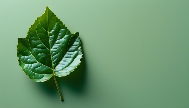 一片绿色的叶子,背景为浅绿色,展现自然之美。
